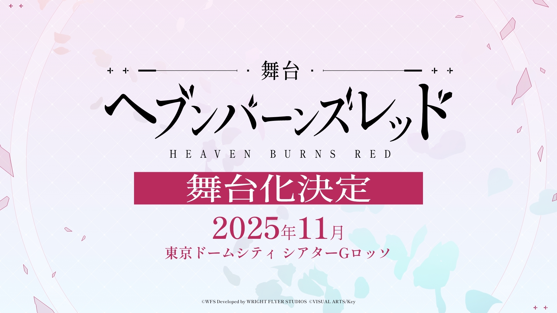 Команда разработчиков мобильной ролевой игры «Heaven Burns Red» от WFS и Key объявила, что игра будет адаптирована в сценическую постановку, премьера которой запланирована на ноябрь 2024 года в Tokyo Dome City Theater G Rosso. Специальный веб-сайт для этой сценической постановки «Heaven Burns Red» уже доступен в Интернете.