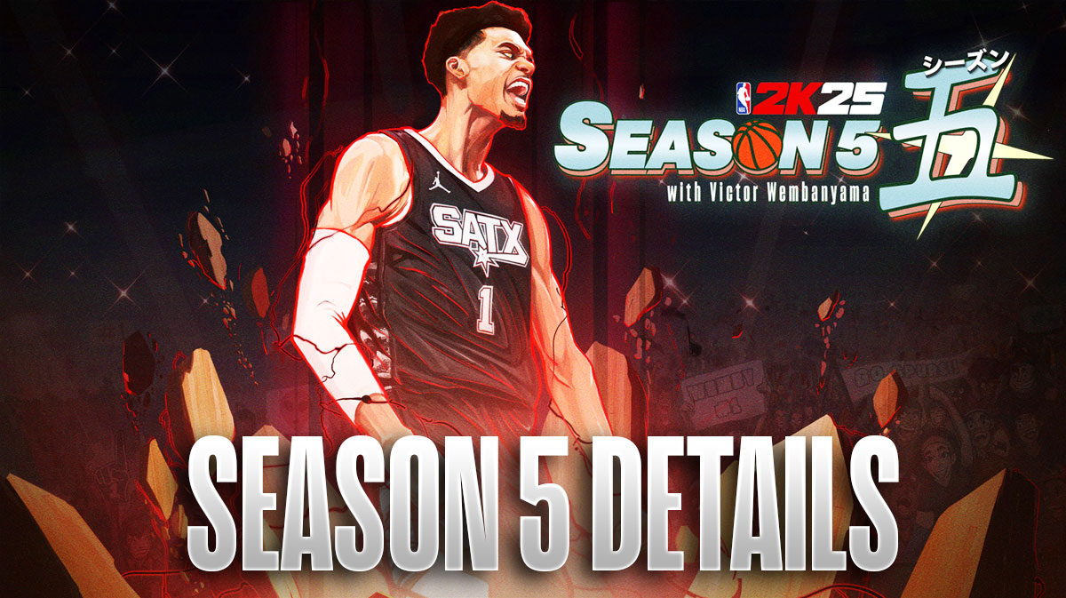 В 5 -м сезоне NBA 2K25 главным событием является вундеркинд Сан -Антонио Сперс, Виктор Вембаняма, который украшает сцену. В первом в общем году был выбран в общем году, Вемби создал ажиотаж в первый день из NBA 2K с беспрецедентным высоким рейтингом для новичка. Затем он укрепил свой статус, заработав новичка года и ведя в блоки в том же сезоне.